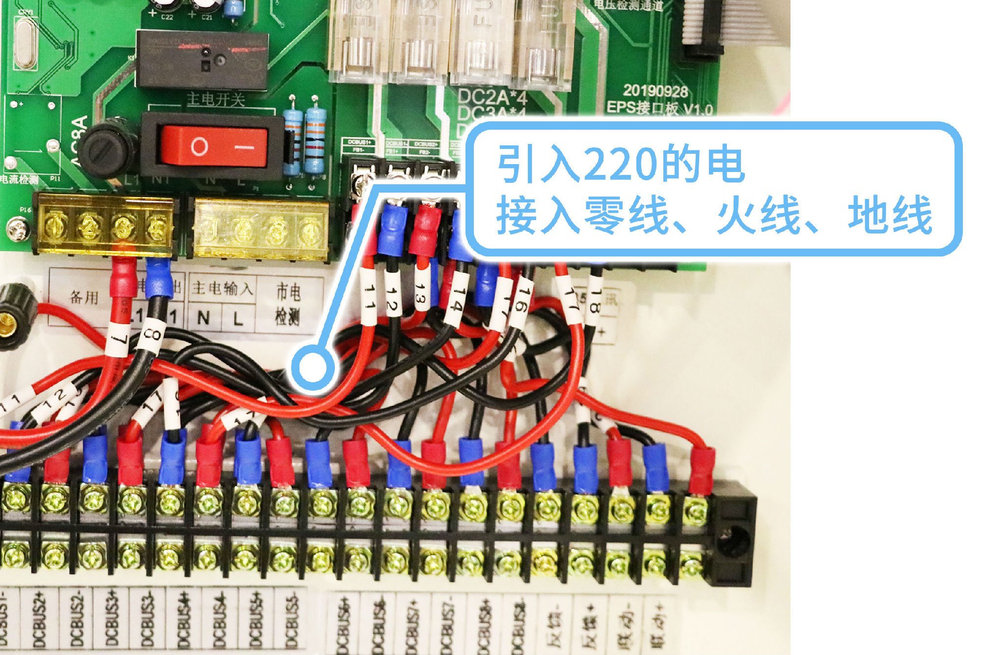 主電部分:先在消防箱引入220的電,接入零線、火線、地線;