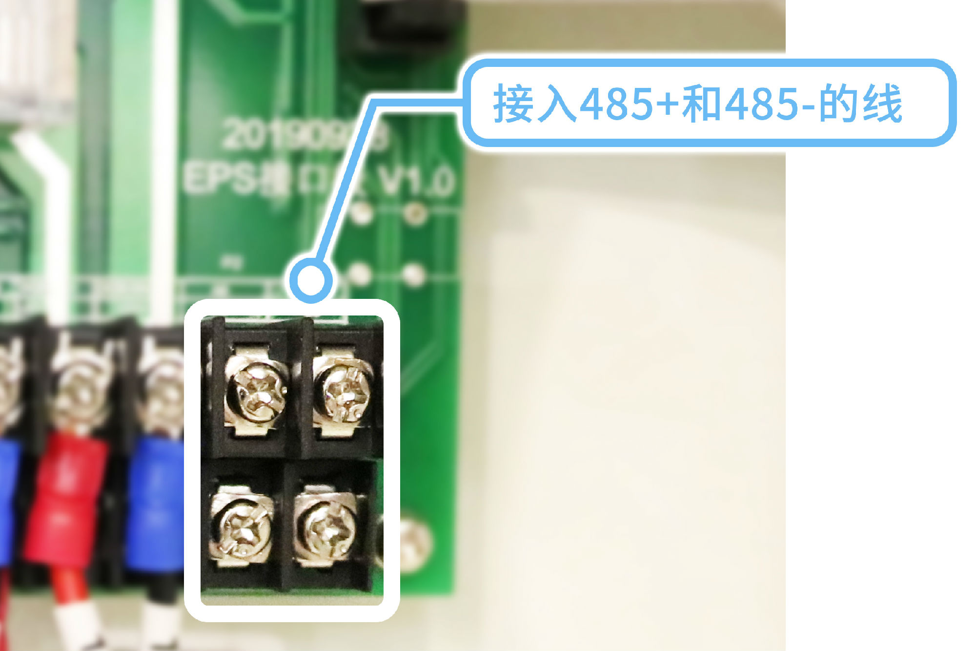 通信部分的主機通信:在以下2個端口接入485+(正)和485-(負)的線,注意不要接反;
