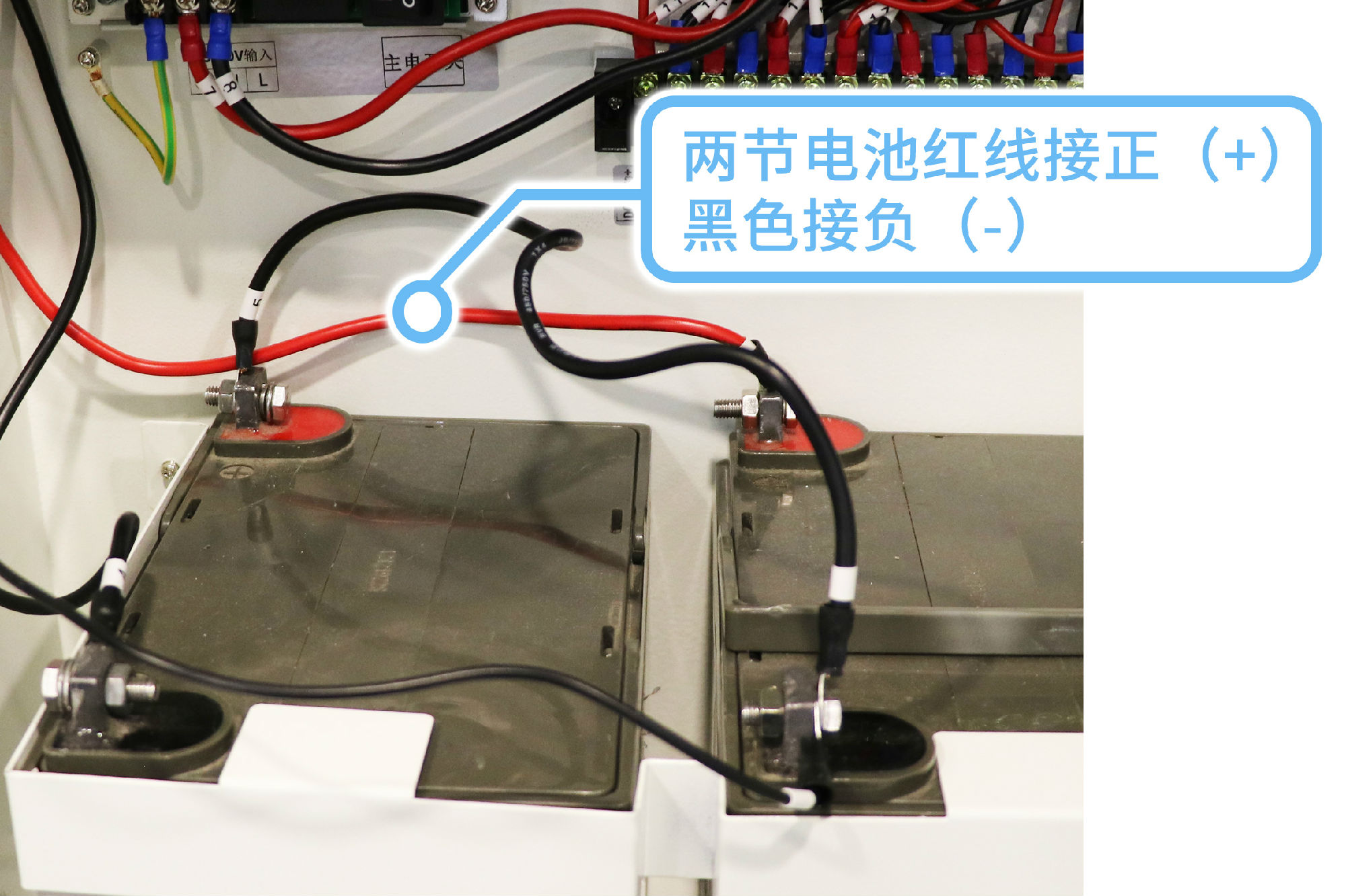 備電部分:使用兩節電池,紅線接正(+),黑色接負(-),中間有一條連接線,一條細的檢測線,線路接好后,可以上電測試;